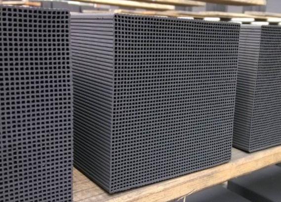 通常所说的蜂窝活性炭主要有圈柱形,椭圆柱形和正方体三种外形,它们含有正方形,圆形,六边形和三角形的通道,具有较大的比表面积和丰富的微孔结构四,而蜂窝状活性炭实质上就是这样一类具有开孔结构的蜂窝活性炭,这种结构主要有三个几何特征参数:通道或腔胞的形状、通道的尺寸以及壁厚。其他特征参数,如胞密度(单位表面积的胞个数)、几何表面积和孔限率,都可由前面的三个参数计算得到按制备过程的差异可以将峰窝状活性炭可以分为两种类型:涂层式蜂窝构和整体式蜂窝结构。